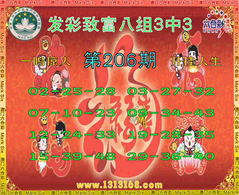 206期: 🍃《发彩致富》 🍃八组3中3🍃