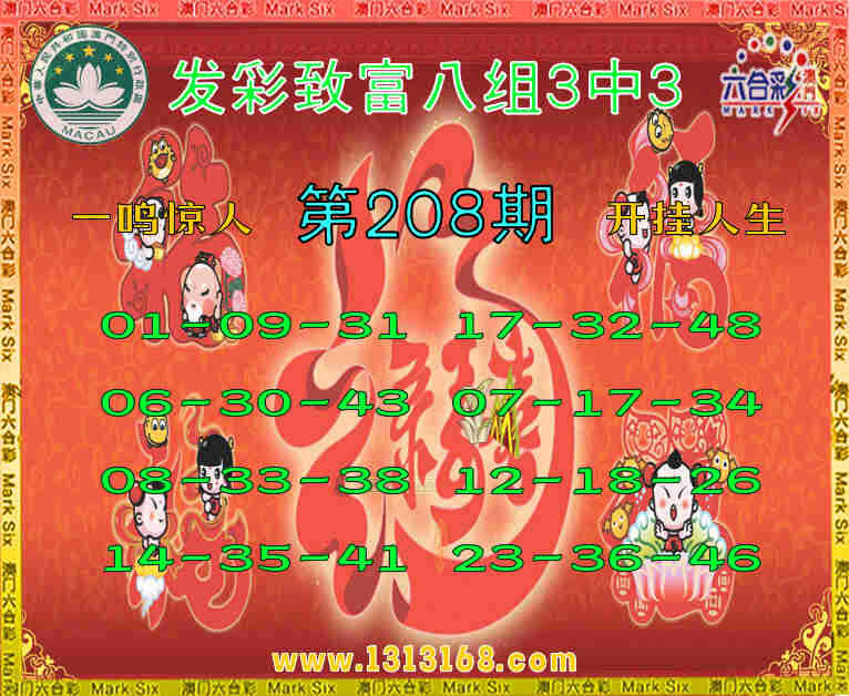 208期: 🍃《发彩致富》 🍃八组3中3🍃