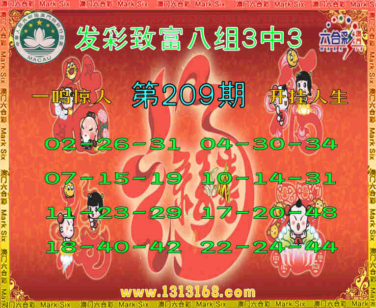 209期: 🍃《发彩致富》 🍃八组3中3🍃