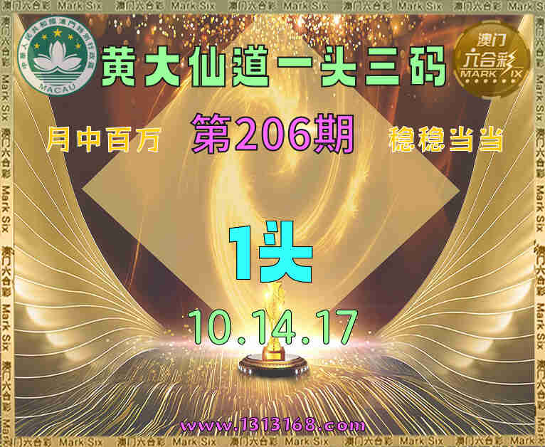 206期:【黄大仙道】 🎖️一头三码🎖️【1头主:10.14.17】开:猴10