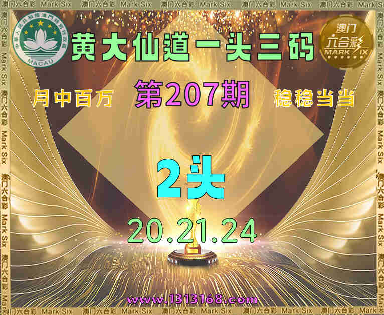 207期:【黄大仙道】 🎖️一头三码🎖️【2头主:20.21.24】开:马24