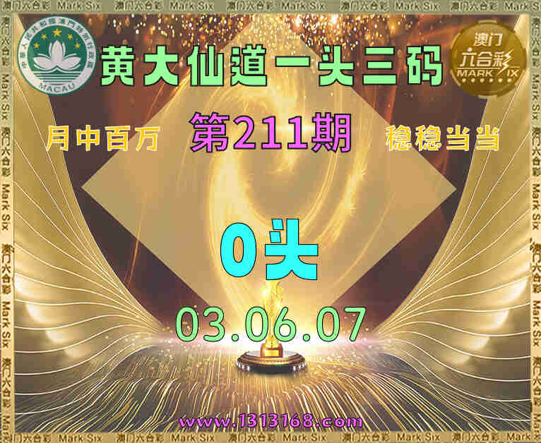 211期:【黄大仙道】 🎖️一头三码🎖️【0头主:03.06.07】开:00准