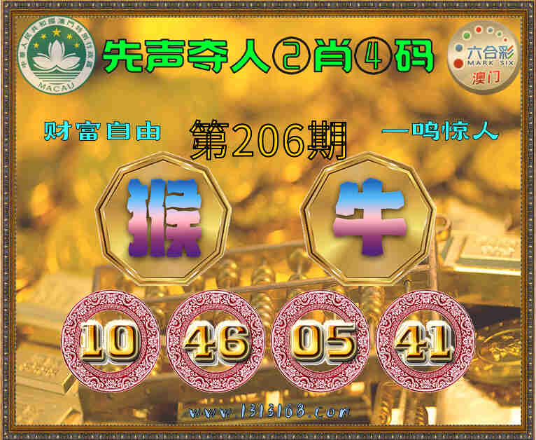 206期:《先声夺人》 🎈②肖④码🎈【牛】【10.46.05.41】开:猴10