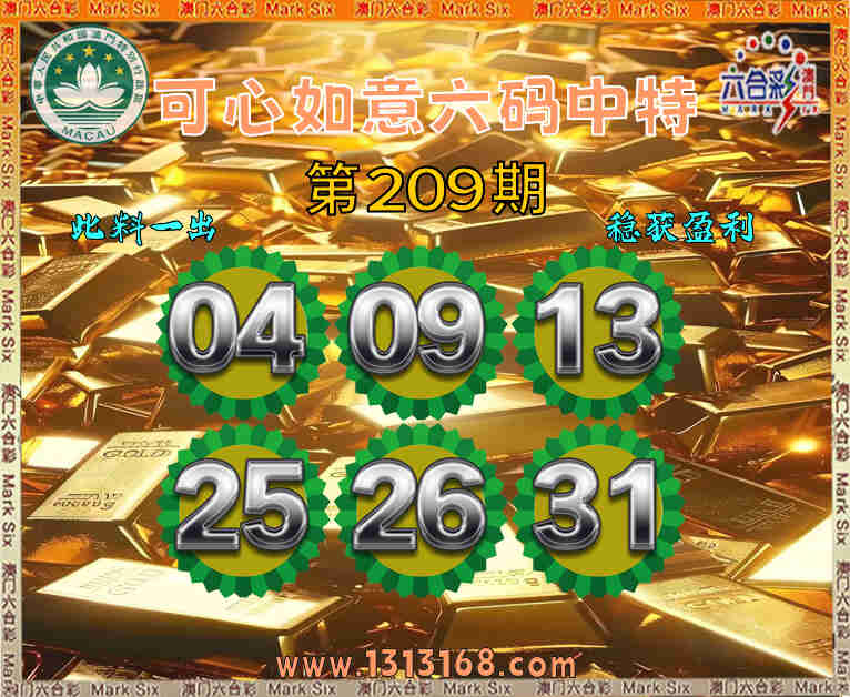 209期:『可心如意』 🥰六码中特🥰【04.09.13.25.26.31】开:13