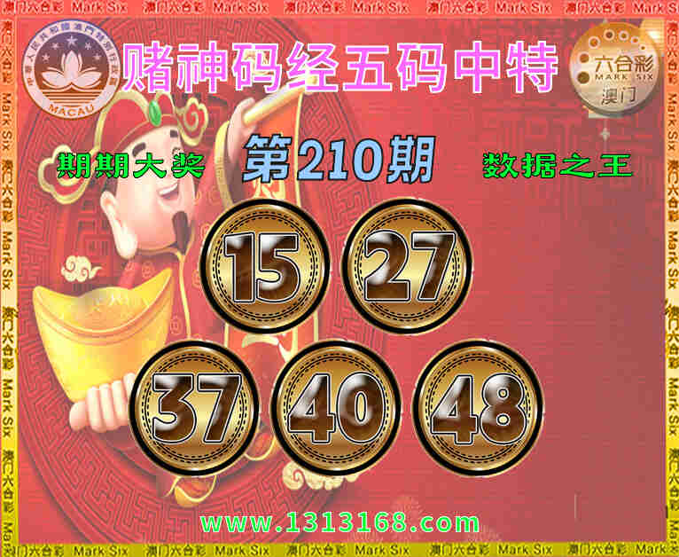 210期:〖赌神码经〗 📸五码中特📸【15.27.37.40.48】开:15