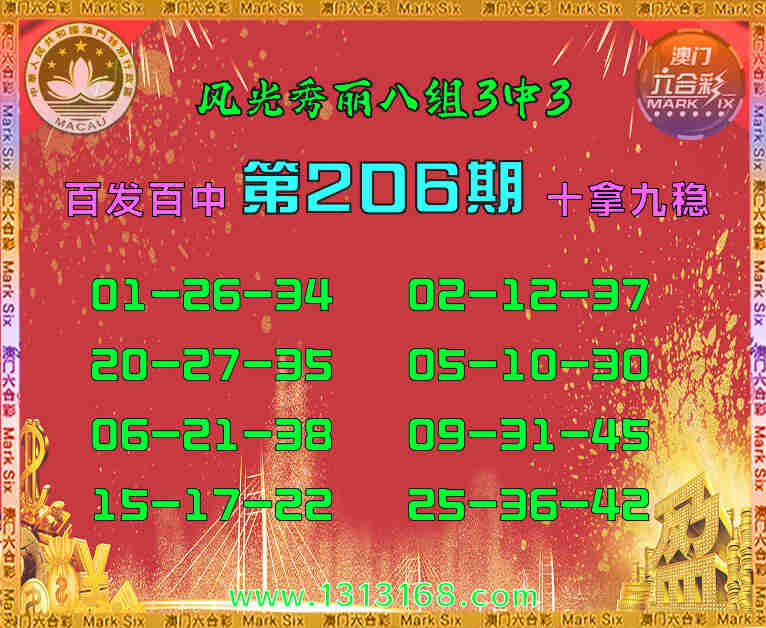 206期:【风光秀丽】 🧩八组3中3🧩