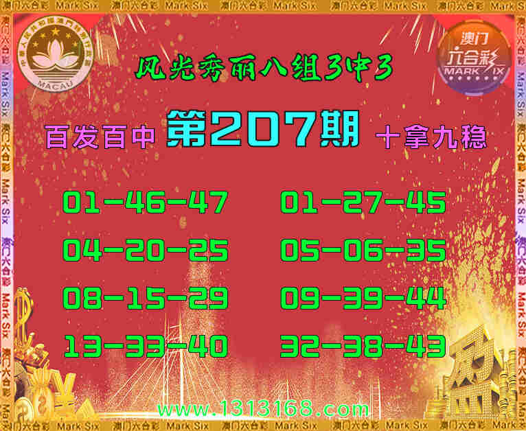 207期:【风光秀丽】 🧩八组3中3🧩