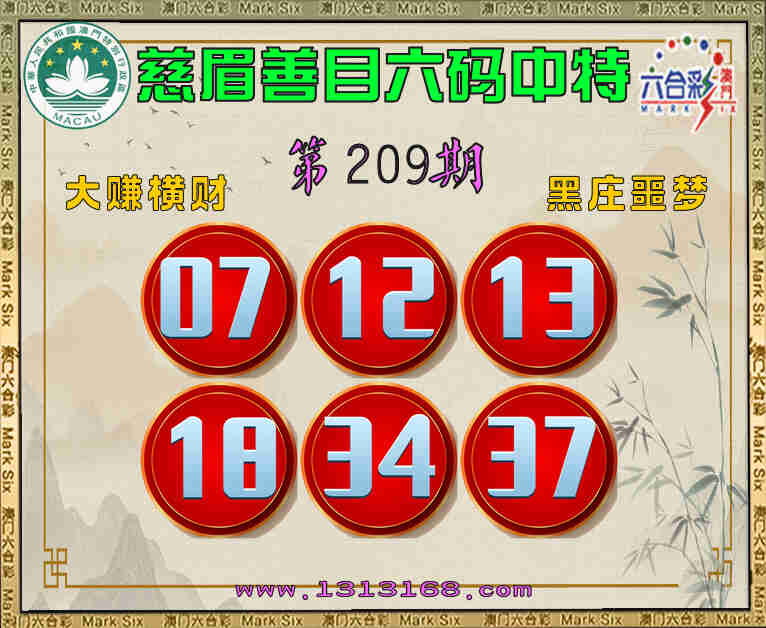 209期:《慈眉善目》 🎯六码中特🎯【07.12.13.18.34.37】开:13上榜高手