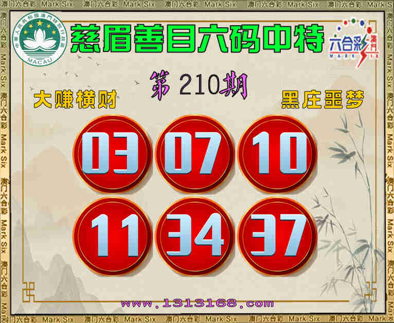 210期:《慈眉善目》 🎯六码中特🎯【03.07.10.11.34.37】开:00准