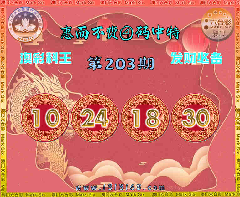 203期: 惠而不费 📙④码中特📙【10.24.18.30】开:18