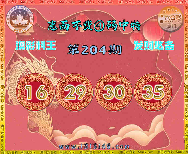 204期: 惠而不费 📙④码中特📙【16.29.30.35】开:30