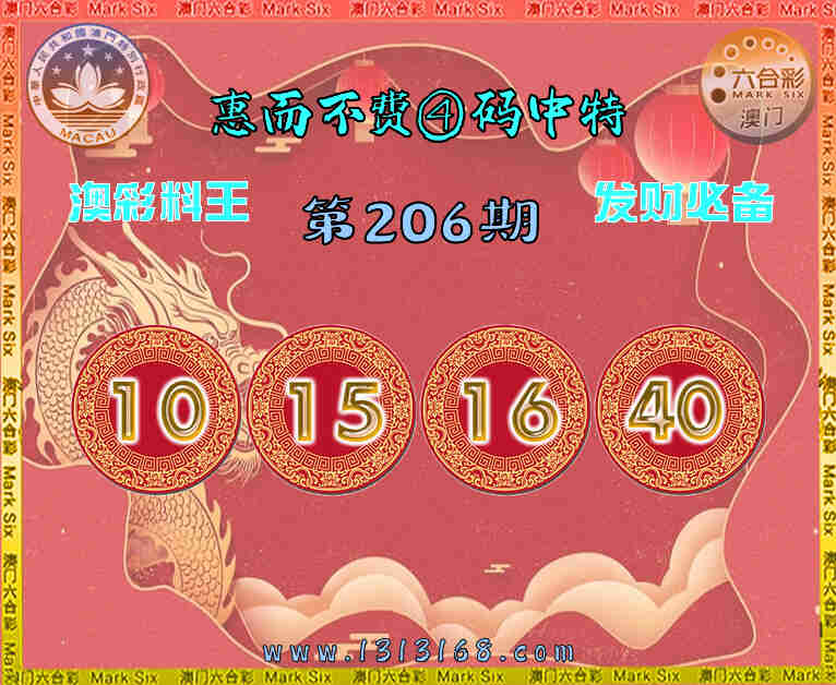 206期: 惠而不费 📙④码中特📙【10.15.16.40】开:10