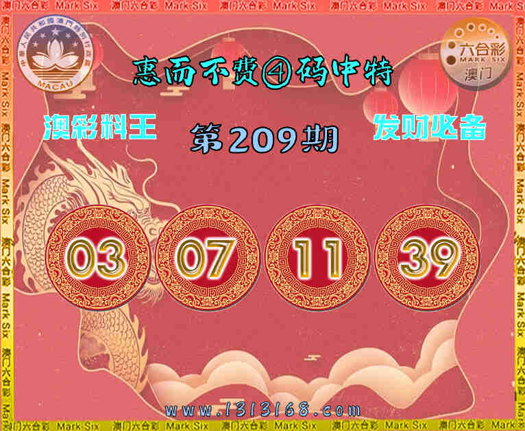 209期: 惠而不费 📙④码中特📙【03.07.11.39】开:13