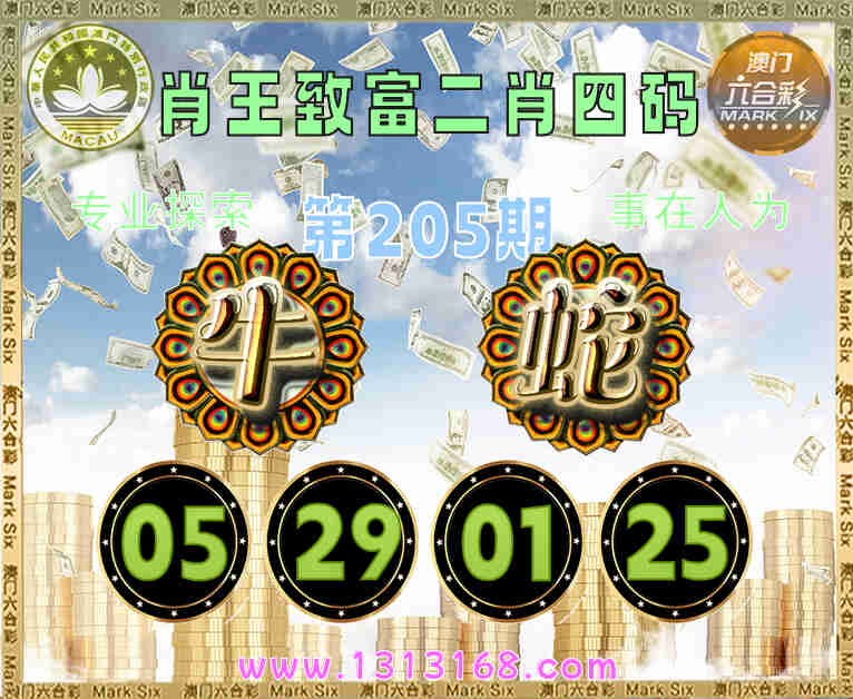 205期: 🍔『肖王致富』 🍔二肖四码🍔【牛】【05.29.01.25】开:蛇01