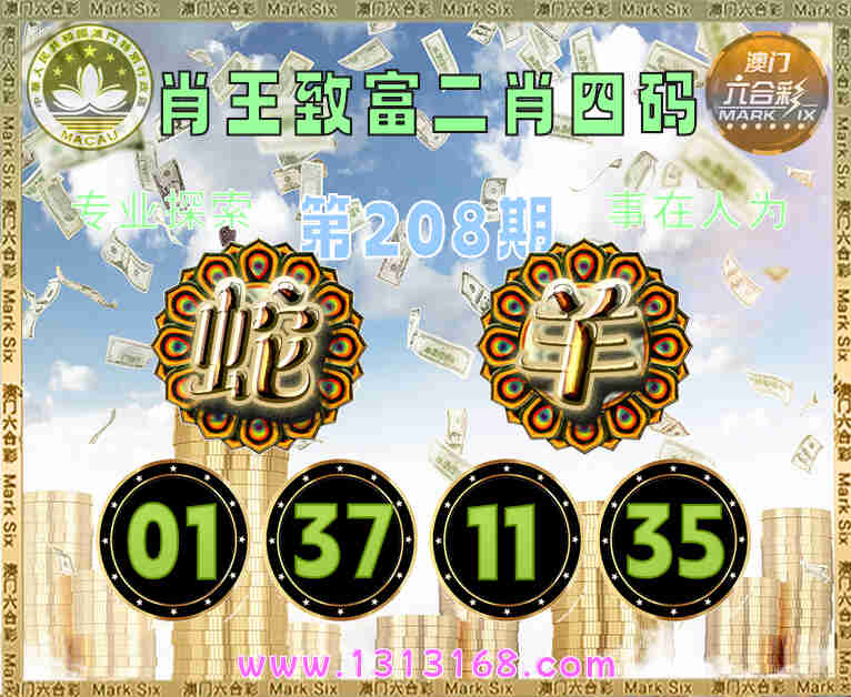 208期: 🍔『肖王致富』 🍔二肖四码🍔【蛇羊】【01.37.11.35】开:00准
