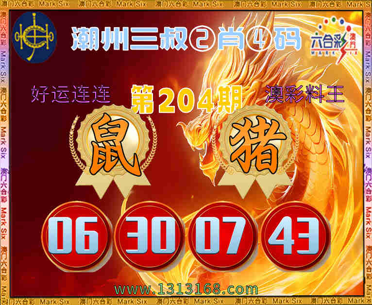 204期:【潮州三叔】 🐁②肖④码🐁【猪】【06.30.07.43】开:鼠30