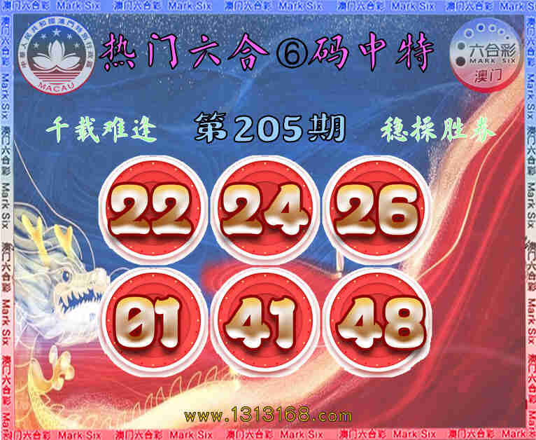 205期:【热门六合】 👛⑥码中特👛【22.24.26.01.41.48】开:01