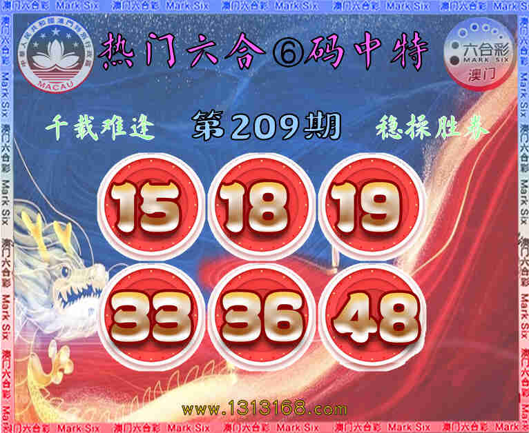 209期:【热门六合】 👛⑥码中特👛【15.18.19.33.36.48】开:00准
