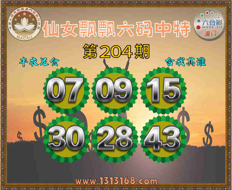 204期:  ♣️『仙女飘飘』  ♣️六码中特 ♣️【07.09.15.30.28.43】开:30