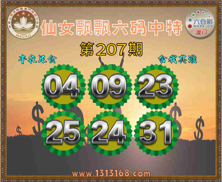 207期:  ♣️『仙女飘飘』  ♣️六码中特 ♣️【04.09.23.25.24.31】开:24