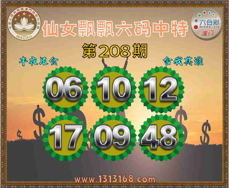 208期:  ♣️『仙女飘飘』  ♣️六码中特 ♣️【06.10.12.17.09.48】开:09