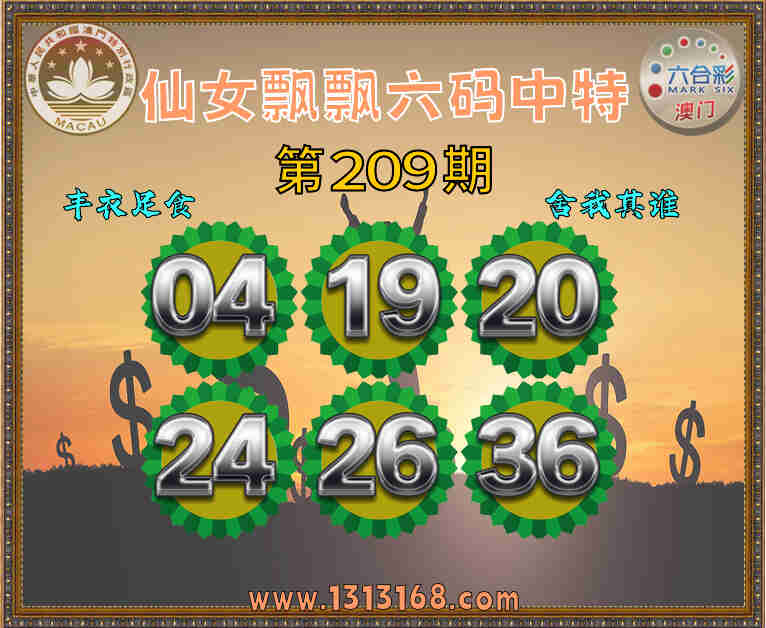 209期:  ♣️『仙女飘飘』  ♣️六码中特 ♣️【04.19.20.24.26.36】开:00准