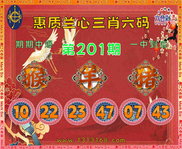 201期: 🥧『惠质兰心』 🥧三肖六码🥧【猴猪】开:羊47