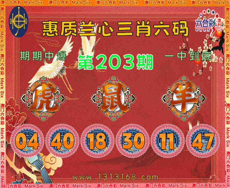 203期: 🥧『惠质兰心』 🥧三肖六码🥧【虎羊】开:鼠18