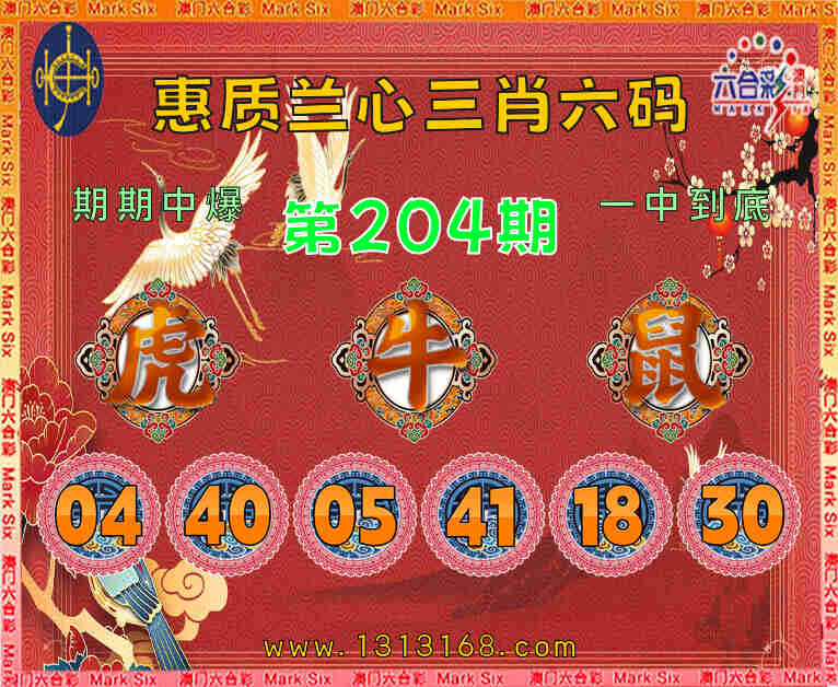 204期: 🥧『惠质兰心』 🥧三肖六码🥧【虎牛】开:鼠30