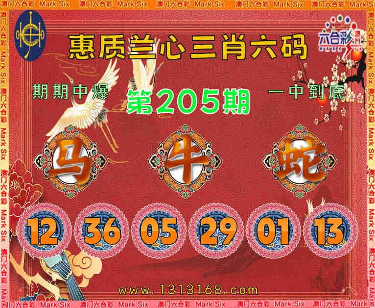 205期: 🥧『惠质兰心』 🥧三肖六码🥧【马牛】开:蛇01