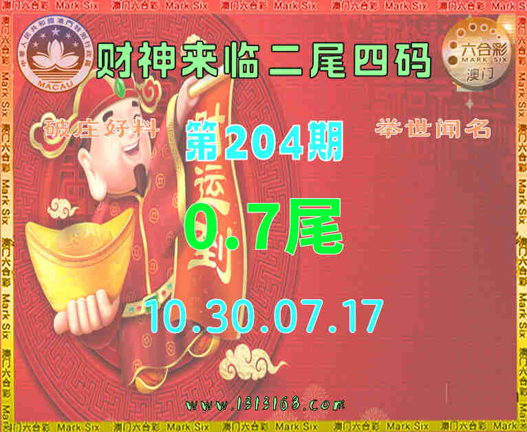 204期: 财神来临 🧩二尾四码🧩【07尾主:10.30.07.17】开:30