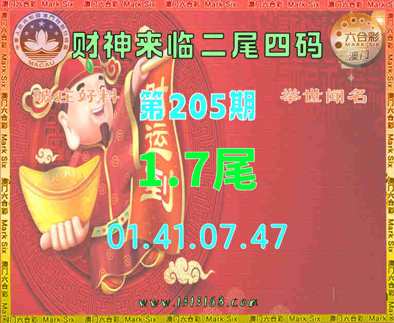 205期: 财神来临 🧩二尾四码🧩【17尾主:01.41.07.47】开:01