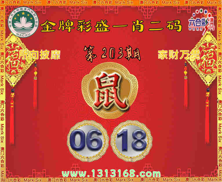 203期:《金牌彩盛》 ☘️一肖二码☘️【】【06.18】开:鼠18