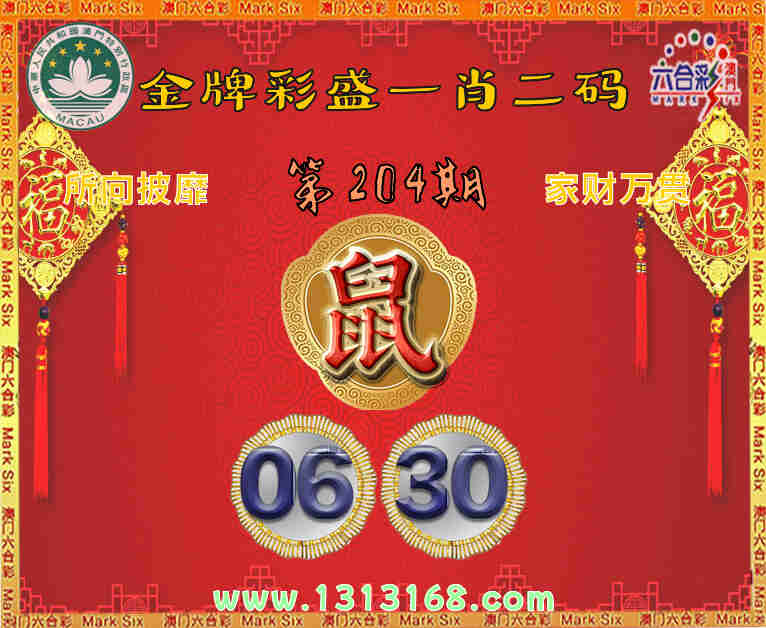 204期:《金牌彩盛》 ☘️一肖二码☘️【】【06.30】开:鼠30