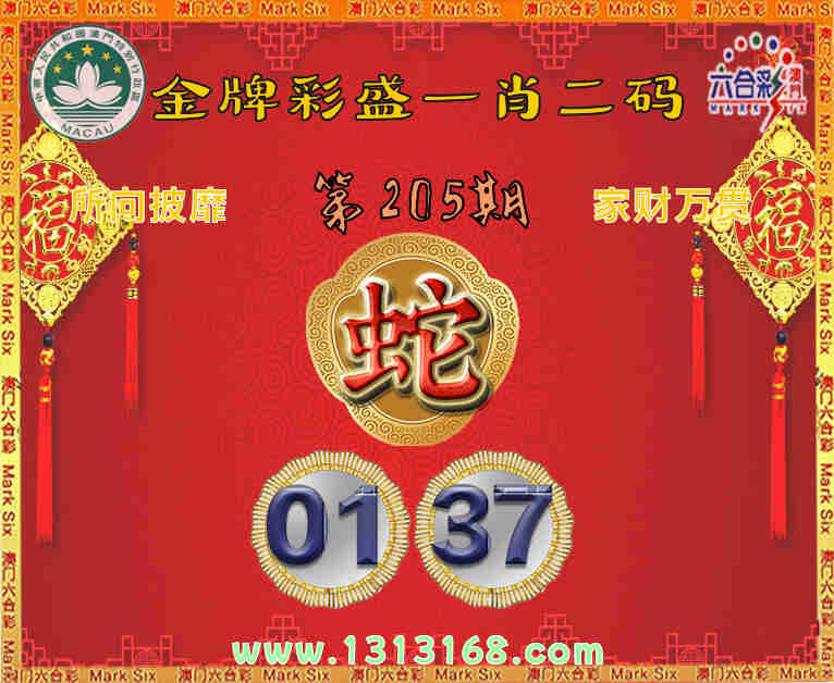 205期:《金牌彩盛》 ☘️一肖二码☘️【】【01.37】开:蛇01