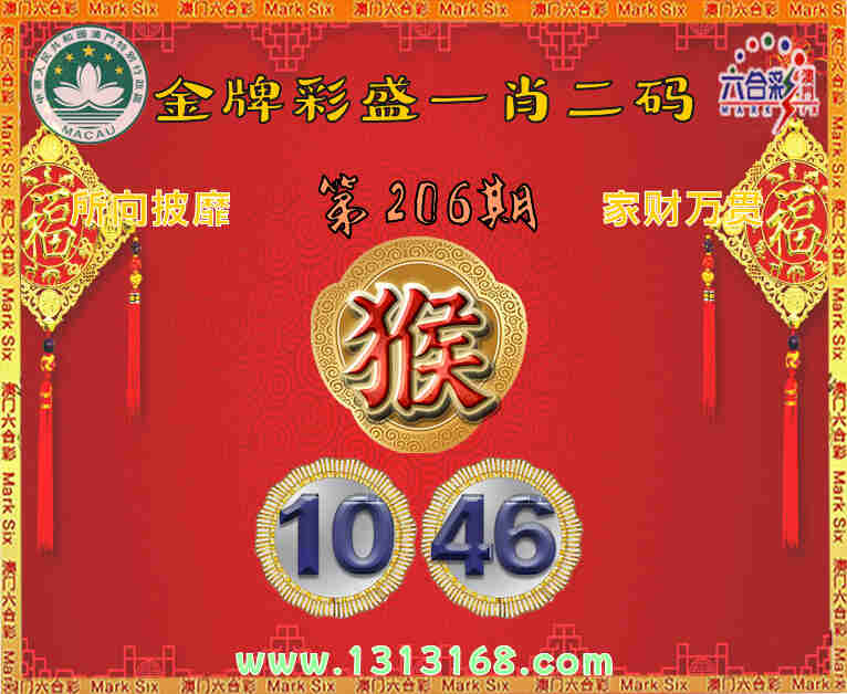 206期:《金牌彩盛》 ☘️一肖二码☘️【】【10.46】开:猴10