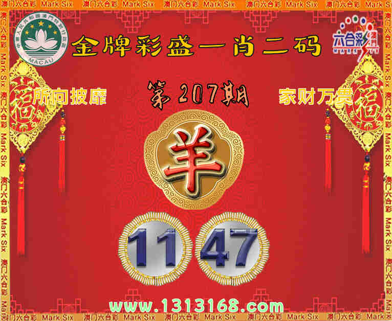 207期:《金牌彩盛》 ☘️一肖二码☘️【羊】【11.47】开:00准