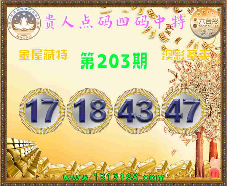 203期:【贵人点码】 📙四码中特📙【17.18.43.47】开:18