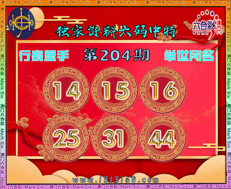 204期:【独家资料】 🎉六码中特🎉【14.15.16.25.31.44】开:00准