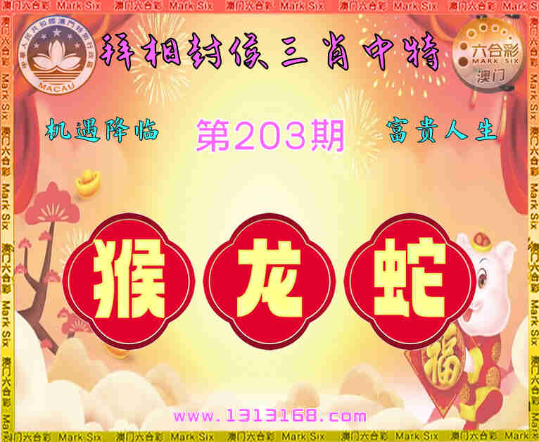 203期:【拜相封侯】 🤘三肖中特🤘【猴.龙.蛇】开:00准
