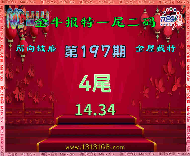197期:『金牛报特』 🌸一尾二码🌸【4尾主:14.34】开:34