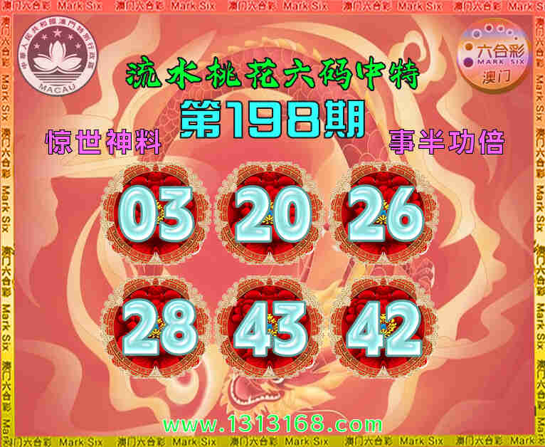 198期:『流水桃花』 😍六码中特😍【03.20.26.28.43.42】开:43