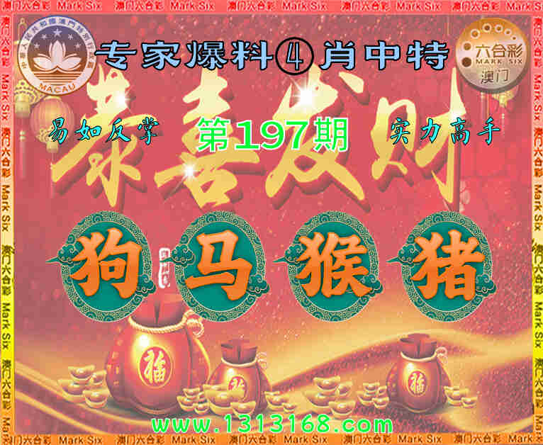 197期:【专家爆料】 ☝️④肖中特☝️【狗.马..猪】开:猴34