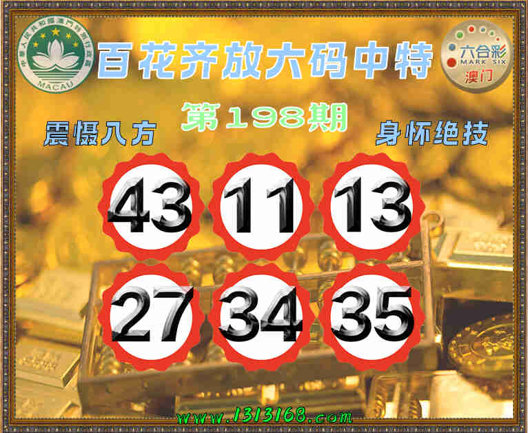 198期:〖百花齐放〗 🥽六码中特🥽【43.11.13.27.34.35】开:43