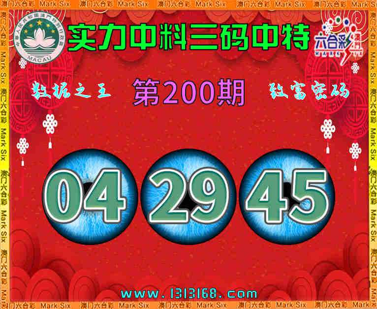 200期:《实力中料》 🥖三码中特🥖【04.29.45】开:00准