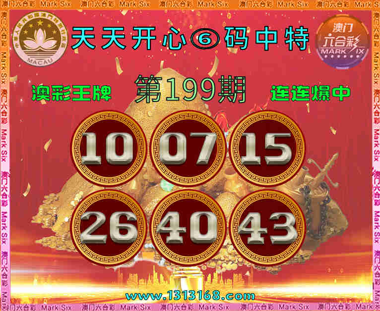 199期:『天天开心』 ♥️⑥码中特♥️【10.07.15.26.40.43】开:10
