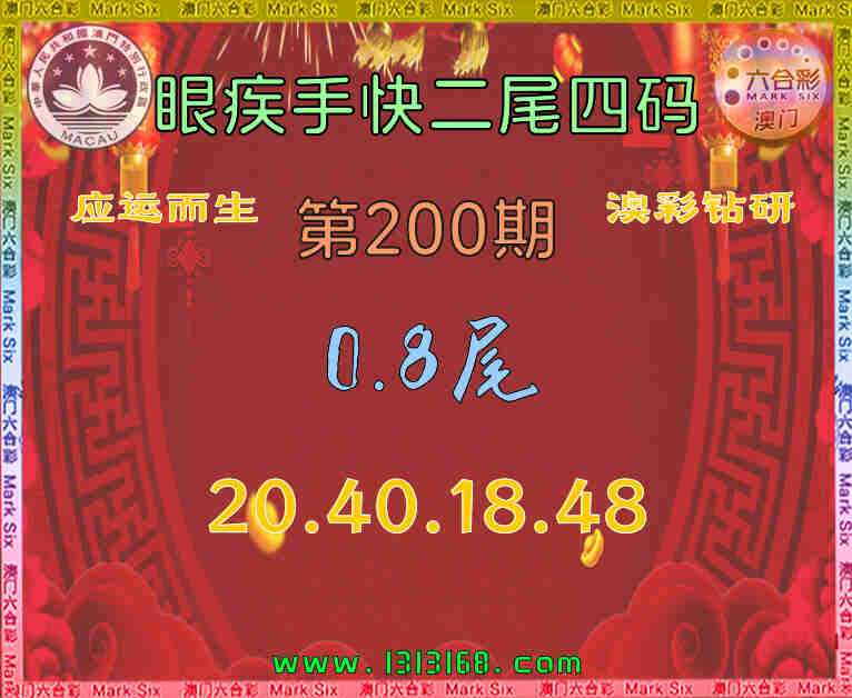 200期:【眼疾手快】 🎀二尾四码🎀【08尾主:20.40.18.48】开:00准