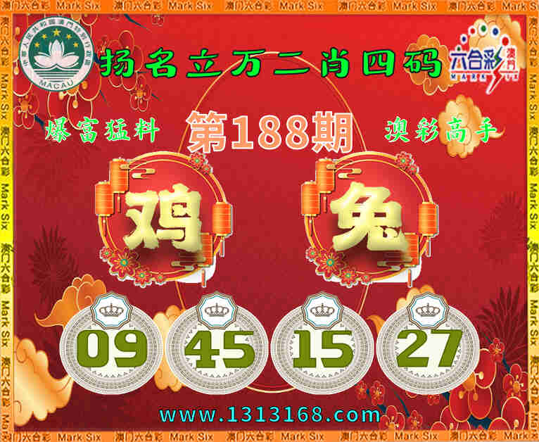 188期:【扬名立万】 🍀二肖四码🍀【鸡】【09.45.15.27】开:兔15