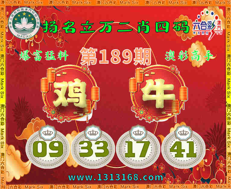 189期:【扬名立万】 🍀二肖四码🍀【鸡】【09.33.17.41】开:牛17