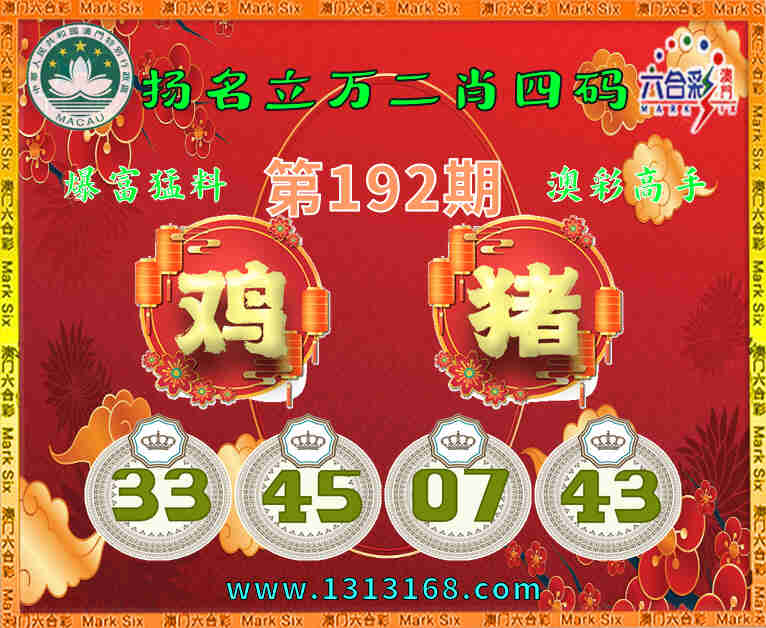 192期:【扬名立万】 🍀二肖四码🍀【猪】【33.45.07.43】开:鸡45